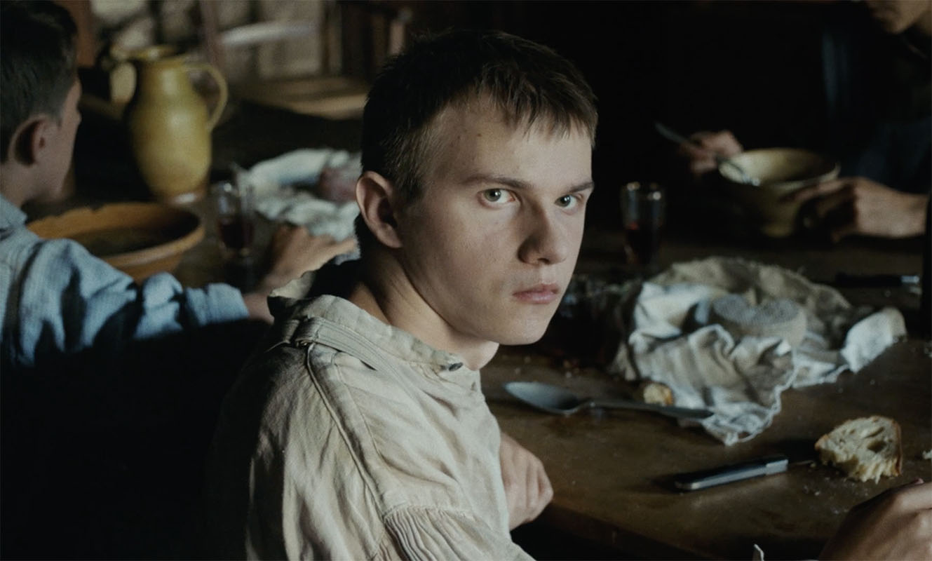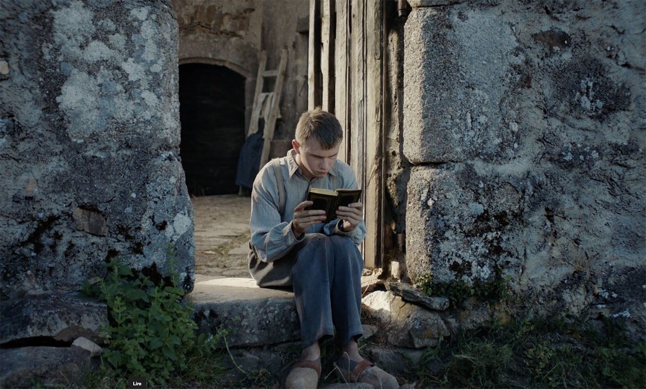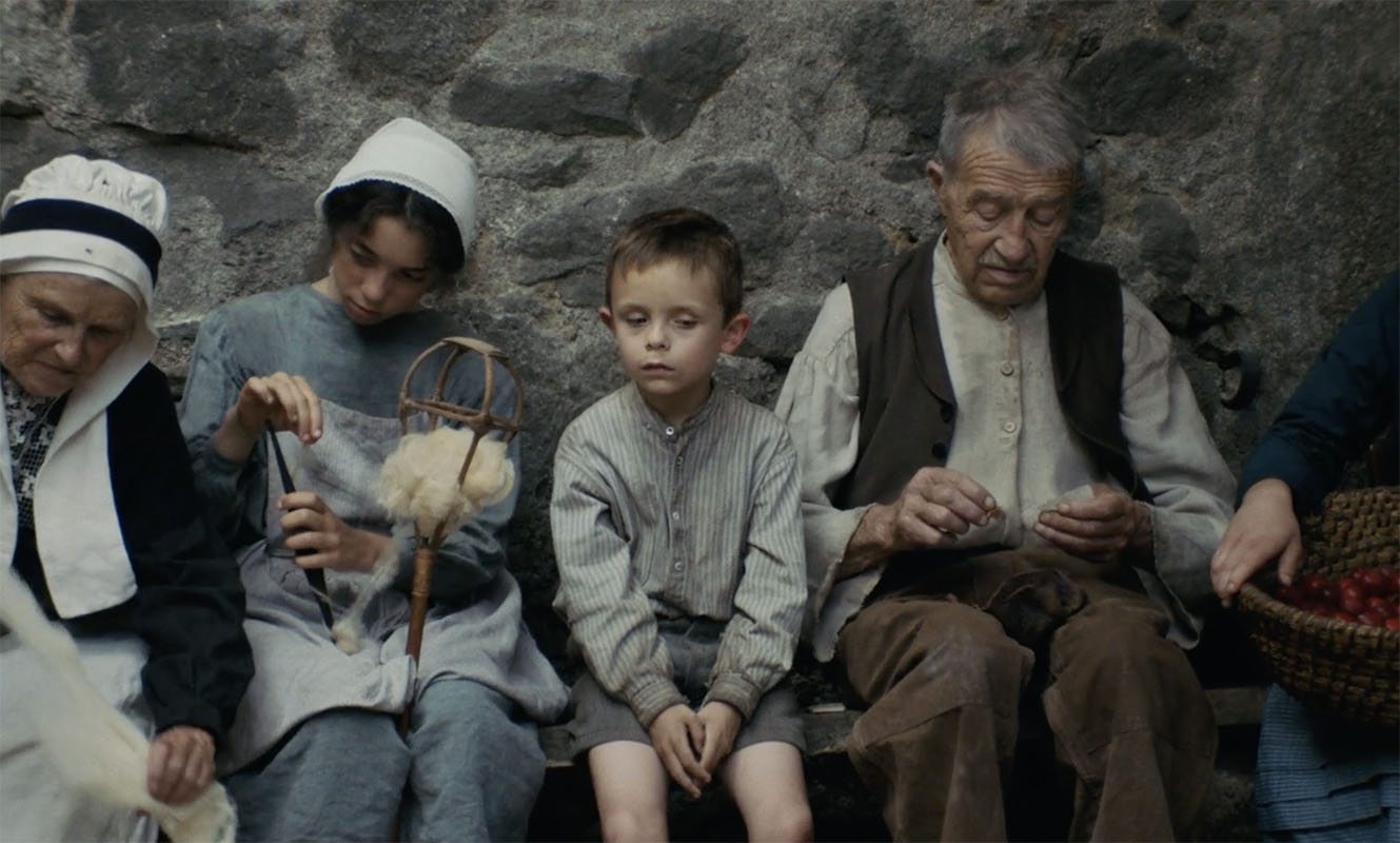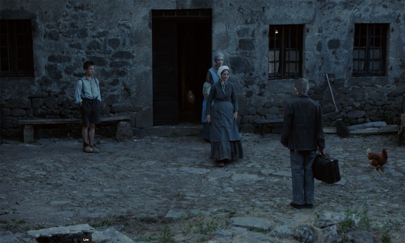 V.L. Ce zoom allait plus loin, et au montage, quand on allait au bout, on tombait dans le film reconstitution d’époque parce qu’on remarquait un détail de décor ou autre chose et au lieu d’être avec ce petit paysan qui nous décrit sa famille, on rentrait dans la « belle reconstitution d’époque ». Quand t’as les moyens de Kubrick, tu peux dézoomer jusqu’au 12 mm et ça marche toujours, nous on s’arrêtait plutôt à 35mm. Sinon le risque c’était de vouloir filmer le travail consciencieux de l’équipe. Jean-Baptiste Alazard, le monteur, a été très fort parce que forcément, toi tu sais que t’as mis quatre heures à préparer ton beau plan avec tes figurants, et t’as envie de le garder, mais au final il n’est pas au service de l’histoire. C’est ça, je pense, qui fait que le film tient en termes de reconstitution.
