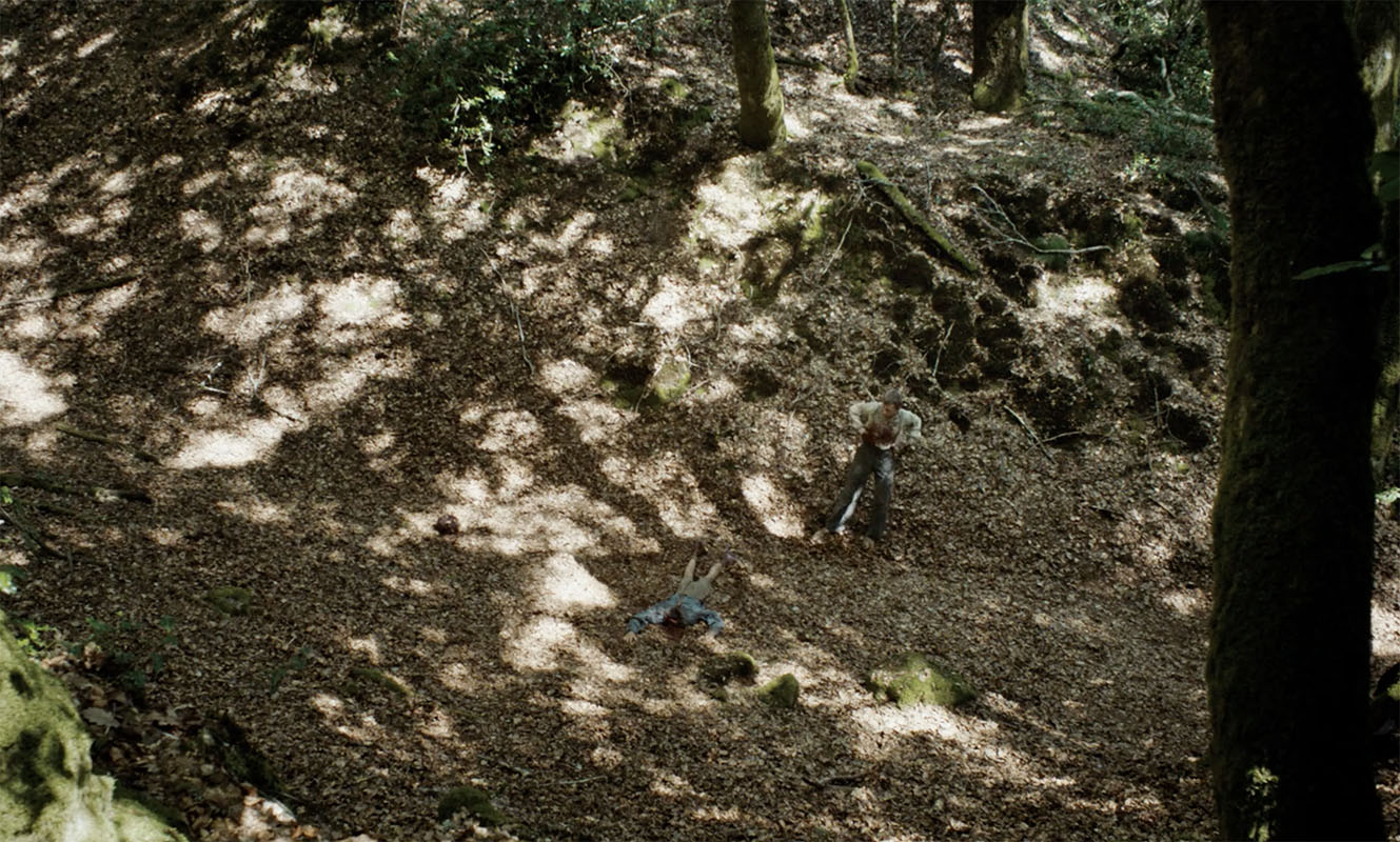 V.L. La cellule de Bruno ressemble à une cellule de moine, la ferme c’est une prison aussi, et donc les seuls moments plus libres, en effet, sont dans la forêt, quand il suit Blondel par exemple, où on a des plans au Steadicam un peu à la Gus Van Sant, plus aériens. Ce n’est pas le cas pour le meurtre, qui se passe en forêt et qu’on a choisi de théâtraliser, notamment par le choix du décor, une sorte de petit vallon entouré de reliefs. Quelque part, le meurtre est une pièce de théâtre que Bruno a en tête depuis dix ans, sauf qu’il se plante dans sa réalisation, une fois qu’il passe à l’acte: il se rend compte que c’est nul et qu’il aurait mieux fait de garder ses fantasmes de meurtre dans sa tête.