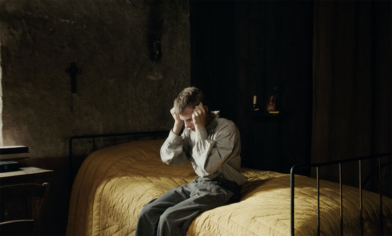 Pour en revenir aux références, Vincent avait fait un travail d’iconographie par thème : la mort, le séminaire, la masturbation, un peu toutes les étapes du « chemin de croix » de Bruno, c’est un travail précieux qui a été fait en amont pour amasser des informations visuelles de référence pour toutes les équipes : image, déco, maquillage, costumes. Ces images ont nourri notre travail et nos réflexions tout au long de la production. On a pu échanger entre différents corps de métiers sur cette base commune et s’accorder les uns avec les autres.