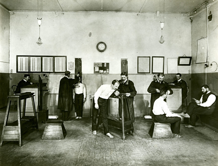 V.L. Typiquement pour la salle d’examen on a fait de la recherche iconographique et on a retenu la photo d’une salle d’interrogatoire avec une estrade légèrement surélevée, sans que ce soit théâtral pour autant.