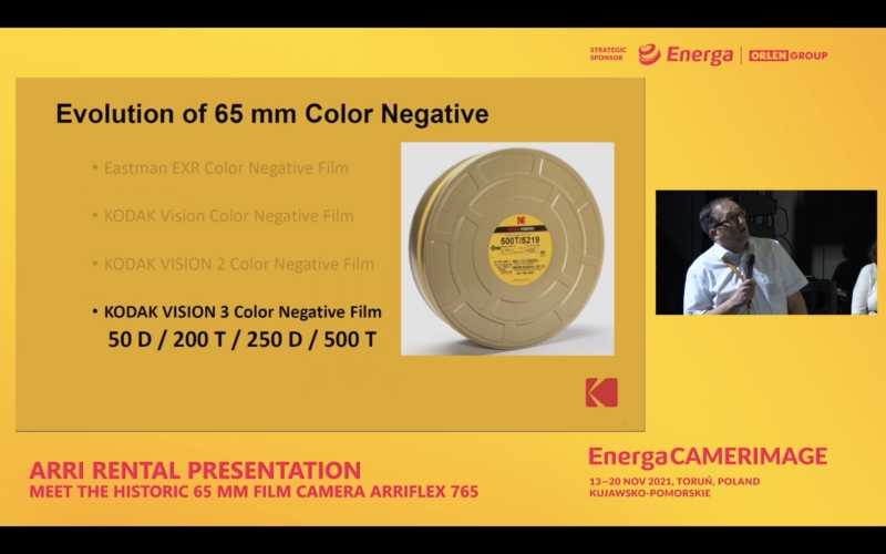 Stakeholder for Arri Rental, the excellent Sasha Mieke presents the 765 genesis. The need for a large format but compact camera is felt from the 70s. The influences issued from the French new wave and then from the New Hollywood disrupt the codes of directing. It is about leaving studios, shooting lightly with direct sound and maintaining the large format unmatched quality.