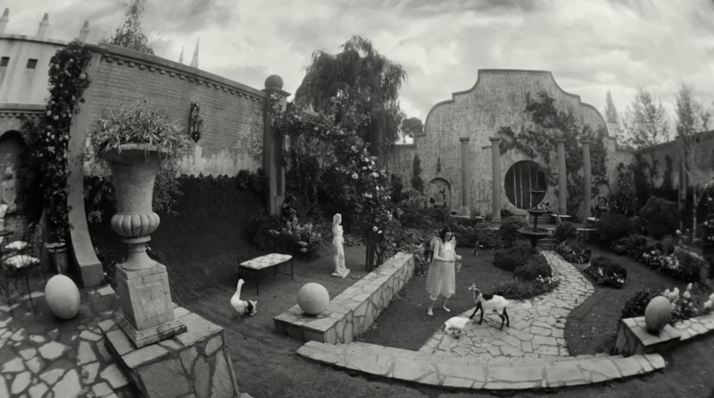 Bella, créée de toutes pièces dans le grand manoir victorien de Godwin, fait ses premiers pas à l’écran dans le couloir de l’entrée de la demeure. Cependant, c’est dans le jardin qu’elle apparaît pour la dernière fois. Ce jardin dépasse son rôle de simple espace vert pour se transformer en un lieu symbolique, notamment lorsqu’il devient le décor de la dernière séquence du film. C’est ici que Bella achève ses pérégrinations et conclut son histoire.