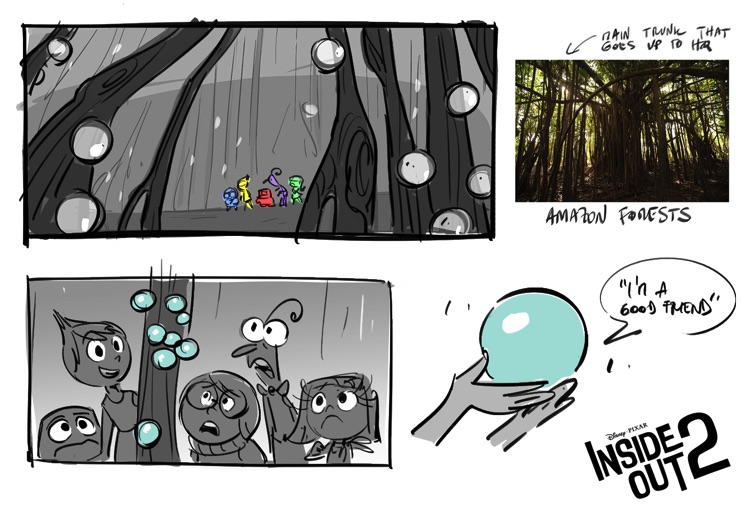 Par exemple, la séquence « Brainstorm » s’écartait considérablement de l’action écrite. Au fur et à mesure que nous avancions dans la production et travaillions sur le troisième acte, nous nous sommes souvent retrouvés à travailler sans storyboard du tout, souvent à partir de pages de script ou parfois juste d’un pitch verbal.