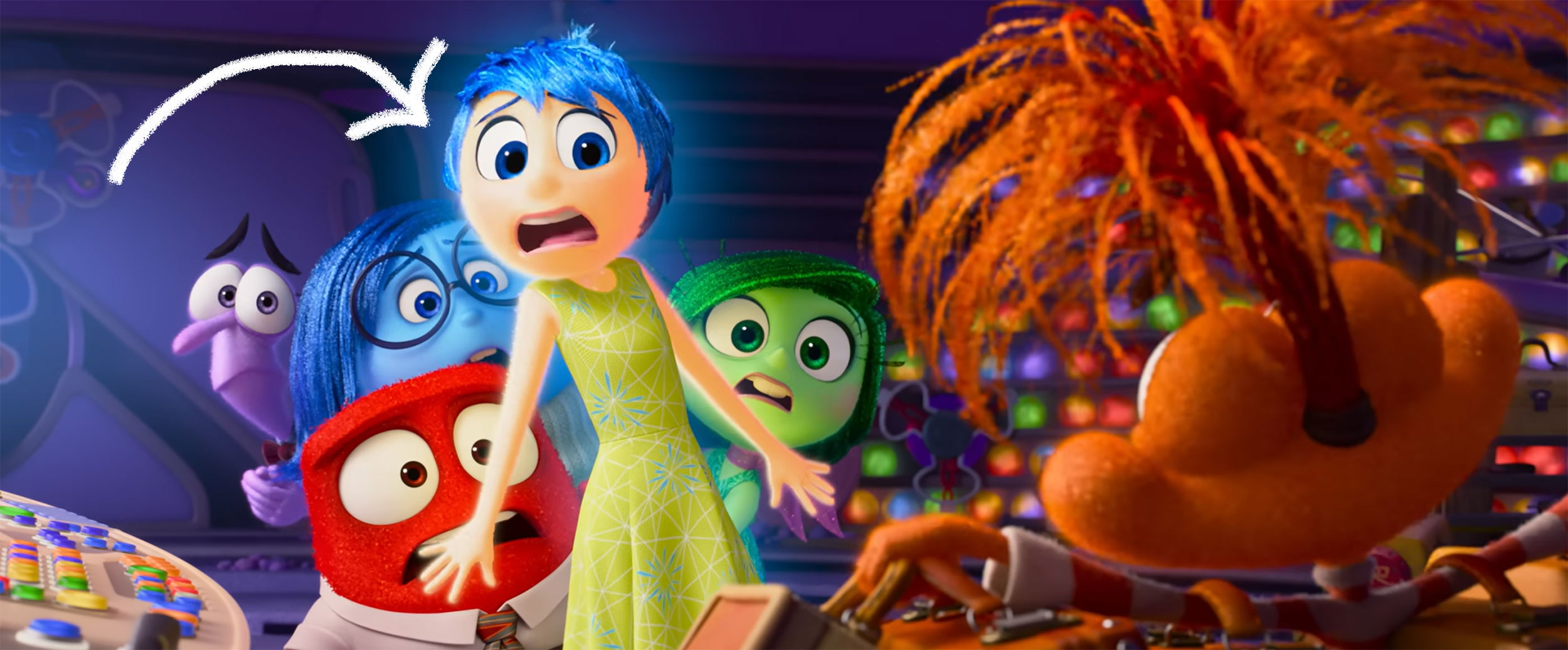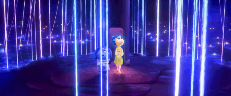 We also learn which focal lengths work for each character – for instance, « Joy » and the other emotions worked with wider focal lengths than one might expect. A group shot or a full shot was typically shot with a 25mm, and a close-up could be shot with a 32 or more rarely a 50. Almost never longer (in Super35 format).