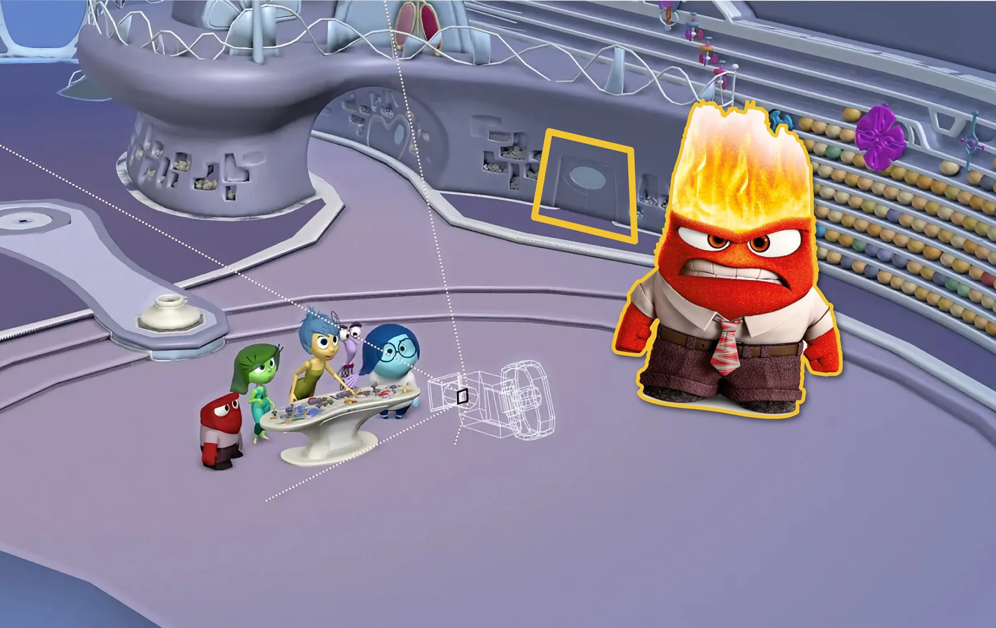 Normal human eyes are very small. And for non-human characters, like the emotions, they’re completely out of norm. They’re treated almost more like a painting. We light them, but it’s not conventional physical lighting, and they’re lit separately from the rest of the set.