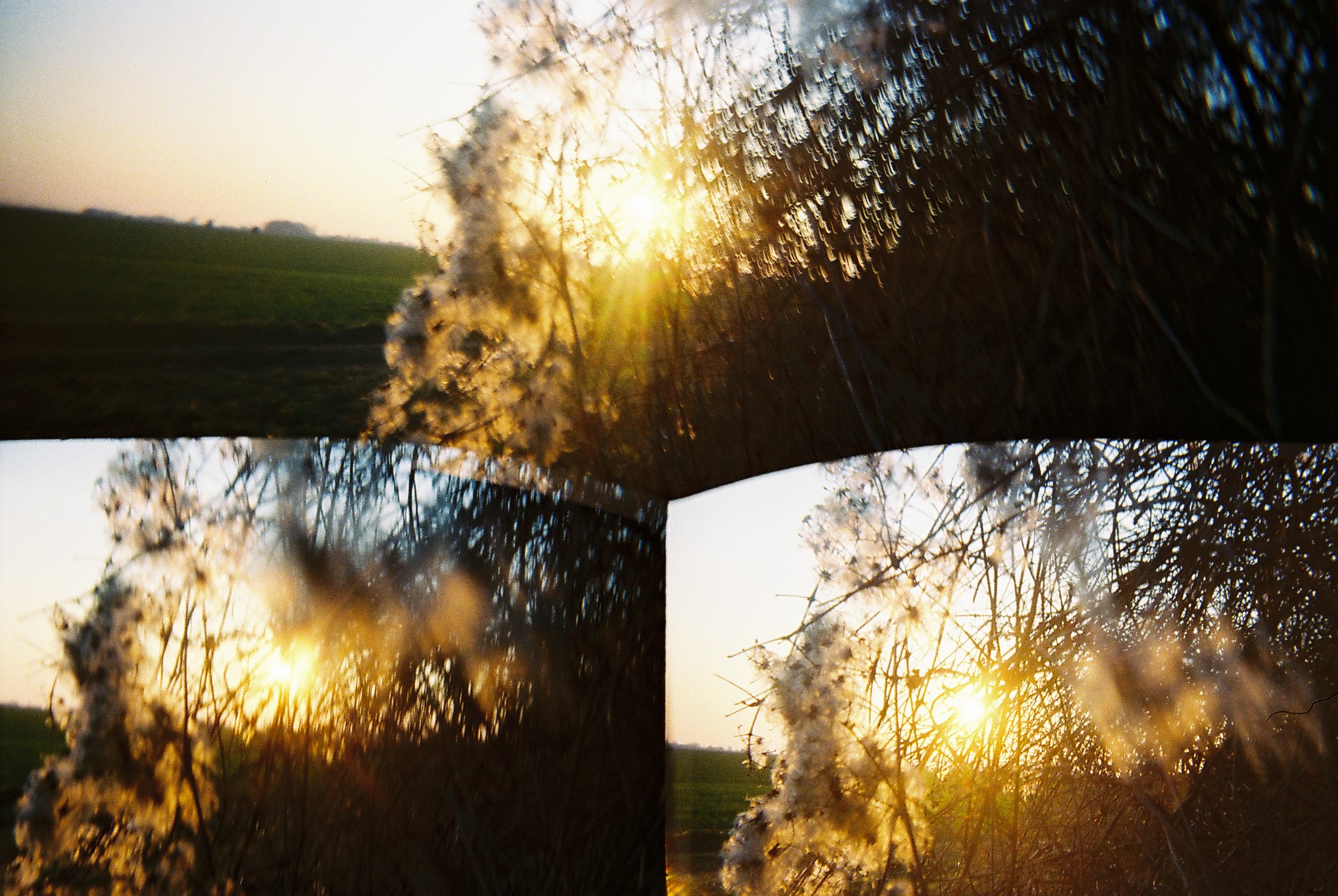 Clémence Thurninger, française formée en Pologne à l’école de Lódz, propose un glissement de regard dans une démarche minimaliste prise avec un tout petit appareil photo amateur : « J’aime faire de la photo mais n’apprécie pas porter du matériel, j’ai donc souvent opté pour des appareils petits et légers que je peux avoir toujours en poche. Cette série de photographies est une petite sélection de ces moments pris sur le vif durant mes voyages, mes tournages. Elle a été réalisée avec le petit bijou exposé également. Plus jouet que boîtier photo, ce faux LOMO, par le format qu’il propose, m’a permis de jouer avec le temps et le mouvement au sein de cadres fixes. Chaque cliché comme un triptyque en soi… une trinité que j’ai choisi de conserver pour vous raconter ces 3 souvenirs, moments suspendus mais en devenir… »