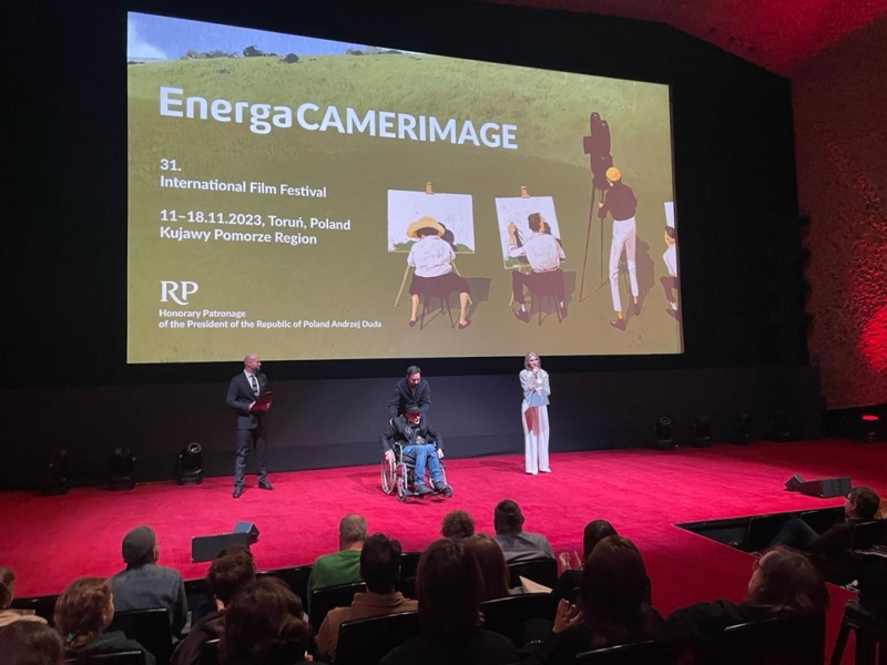 Pablo Larraín and Edward Lachman (injured on his last shoot), on the main stage of the CKK at Camerimage Festival 2023.