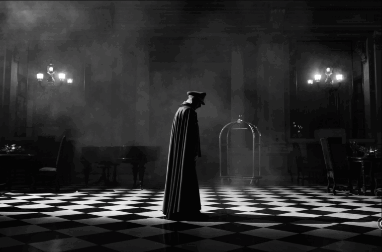 Ultimately, the film finds its balance in a kind of gray area. A palette of grays found in the exteriors, and in the fine mist of the Patagonian landscape, El Conde’s main set, shot in the summer of 2022. Larraín describes the special Patagonian atmosphere: « The sky imitated the magic hour perfectly… At any time of day! It was the ideal tone for the film’s image ». It’s against this backdrop that Pinochet emerges, like a stain, accompanied by his more neutral relatives, and facing Carmen dressed in a dazzling glow. A symbolic halo that can be seen on several occasions in the painted portrait of the dictator that hangs in the dining room.