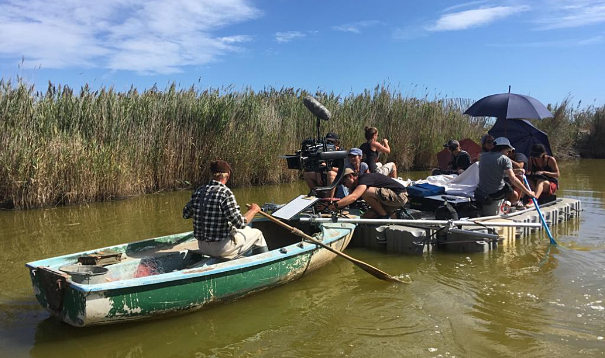 Ce qui me vient à l’esprit ce sont aussi les tournages maritimes auxquels j’ai participé à plusieurs reprises. D’abord en tant qu’assistant caméra sur le film « Naufragé Volontaire » de Didier Nion (avec la très belle photo de Gilles Arnaud) qui nous a fait travailler pendant 3 mois en pleine mer sur un radeau de 2mx1,20m avec seulement un Aaton Penelope. Puis l’an dernier j’ai travaillé sur le court métrage de Valerian Denis, « L’Étang d’Or » également avec un Penelope et sur un étang. Forcément l’expérience du long m’a permis d’anticiper un certain nombre de choses et nous avons dû, avec l’aide du chef machiniste Titouane Savart, installer une petite grue (Panther Variojib) sur une barge flottante construite à l’aide de cubes plastiques avec encore une tête Marny au bout. C’était vraiment une configuration parfaite qui nous a permis de trouver tous les emplacements voulus, du ras de l’eau jusqu’à une belle hauteur, tout en gardant une bulle parfaite.