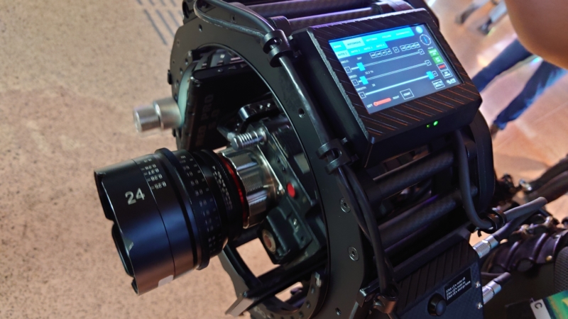 We discovered this company at a small booth where HD Air Studio has developed an elegant solution with their Cyclo Modular Head, a gyro-stabilized head that maintains camera horizontality similar to the ARRI Trinity, but this time on a single axis (therefore not offering Trinity’s javelin mode, which allows horizontal penetration into tight spaces such as vehicle windows).