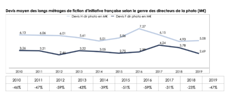 La constance des résultats est la suivante : jusqu’en 2019, 90% des films de fictions cinéma en France sont mis en image par des profils masculins.