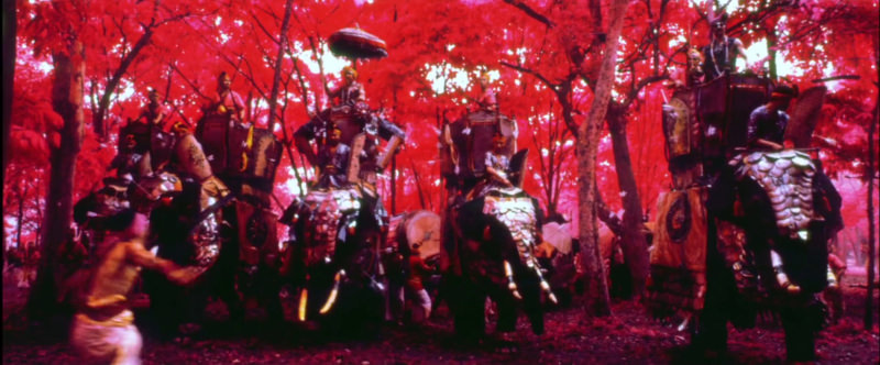 Au cinéma, citons une séquence du film Alexandre, d’Oliver Stone, photographié par Rodrigo Prieto en 2004. Au cours d’une bataille contre les seigneurs de guerre indiens, Alexandre le Grand (Colin Farrell) est gravement blessé, puis ramené dans sa tente par ses généraux alors qu’il est aux portes de la mort. La séquence débutant lorsque la blessure est infligée est filmée en Aerochrome III, lui donnant un effet magnifique et étrange, comme si la jungle entière était teintée de sang. Utiliser les couleurs infrarouges pour montrer un personnage à la frontière entre la vie et la mort est un très bel exemple des applications sémiologiques possible de cette technique.