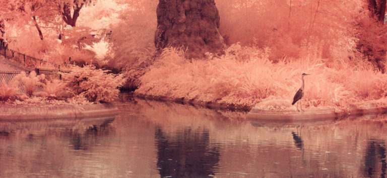 Toute la subtilité du travail en couleurs infrarouge se situe dans le mélange entre lumière visible et lumière dite « invisible » (nous utiliserons ce terme pour définir les longueurs d’ondes infrarouges que le capteur perçoit, mais pas l’œil humain).