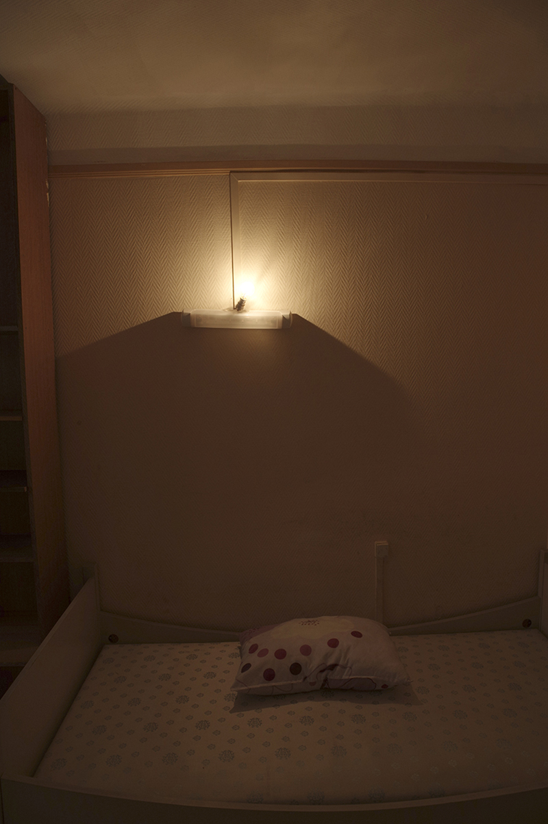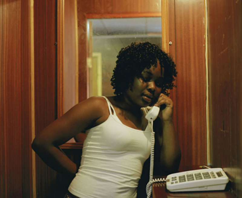 Le travail sur la lumière, et en particulier sur la couleur, a été l’objet d’un long travail préparatoire avec Laure, commencé bien en amont de la véritable préparation du tournage. Nous étions partis du travail de plusieurs photographes ayant exploré des univers domestiques liés à des situations de détresse et de déracinement. Une de nos références principales étaient deux séries du photographe hong-kongais/britannique Dinu Li, du début des années 2000, Secret shadows sur les lieux de vie des travailleurs sans papiers à Londres, et Press the * and say hello sur les internet cafés où les travailleurs étrangers en train d’échanger téléphoniquement avec leurs êtres chers sont contraints de partager un moment intime avec des inconnus.