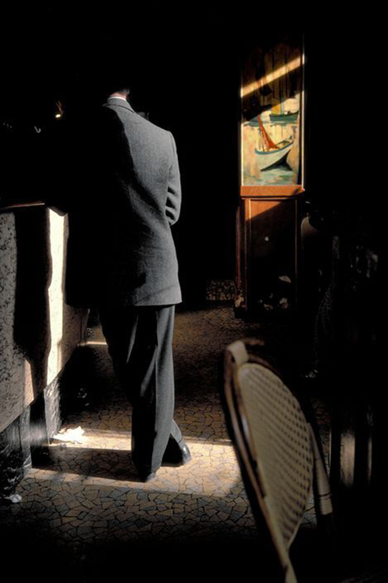 D’une manière plus globale, nous avons tracé une sorte de cheminement de la lumière tout au long du film, où le décor du bar revient à plusieurs reprises, dans des ambiances lumineuses et chromatiques très différentes : pour le début du film, dès l’écriture du scénario, Laure envisageait une ambiance de pénombre, où l’on aurait découvert le visage d’Abdel au fur et à mesure de la première séquence. Une photo du belge Harry Gruyaert nous a donné la direction pour ce début de film : à l’intérieur d’un bar on aperçoit la silhouette d’un homme dont on distingue uniquement les parties du corps qui sont éclairées par une lumière solaire qui filtre à travers les ouvertures. La pose est faite sur les parties de l’image en lumière, le résultat est très contrasté et surprenant : une scène banale se remplit de mystère grâce au choix d’exposition fait par Gruyaert.