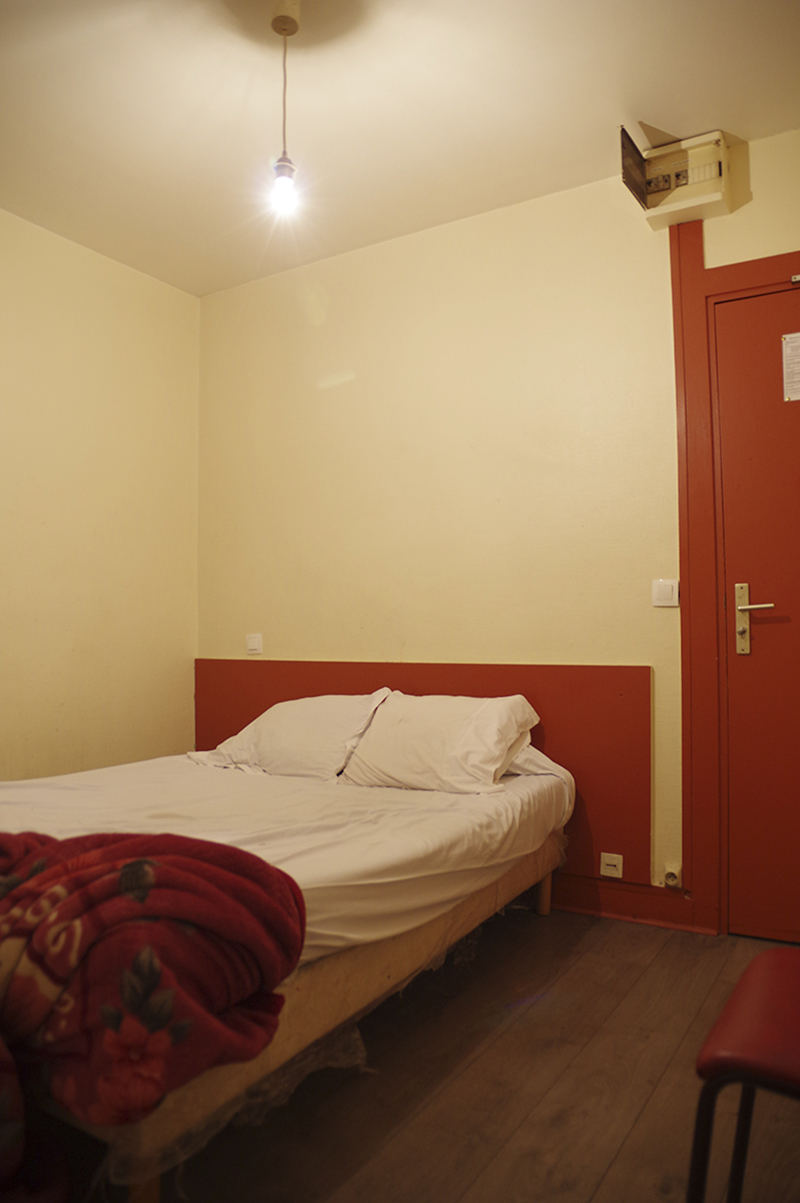 L’approche neutre, en même temps qu’humaine et digne ; la richesse esthétique, chromatique, plastique, l’intérêt porté aux matières; la capacité de transfigurer le trivial, le glauque, le banal à travers la photographie dont fait preuve Dinu Li nous ont donné l’idée de, tout en gardant une mise en scène réaliste et soignée des détails – presque documentaire en quelque sorte – donner un angle poétique à la mise en image du film, en cherchant à atteindre une sorte de réalisme non-naturaliste. L’idée était de nous éloigner d’une esthétique très répandue dans le cinéma français qui traite des thèmes sociaux, qui si l’on caricature un tout petit peu, semble vouloir imposer l’équation : représentation de la pauvreté = laideur du cadre, de la lumière et des décors. Le travail de la photographe française Françoise Huguier sur les appartements partagés en URSS, Kommunalka, nous a également inspirés : les contraintes d’espace qui obligent par exemple les habitants à étendre leur linge dans leur propre chambre à coucher-pièce (unique) de vie, le trop-plein des appartements moscovites, la lumière crue des ampoules nues (que nous avions remarqué également dans les hôtels du 93), la palette chromatique des murs décrépis des espaces communs ; le fait que les habitants, même dans des situations de détresse, décorent leurs logement avec les moyens du bord afin de construire un univers intime et agréable autant que possible.