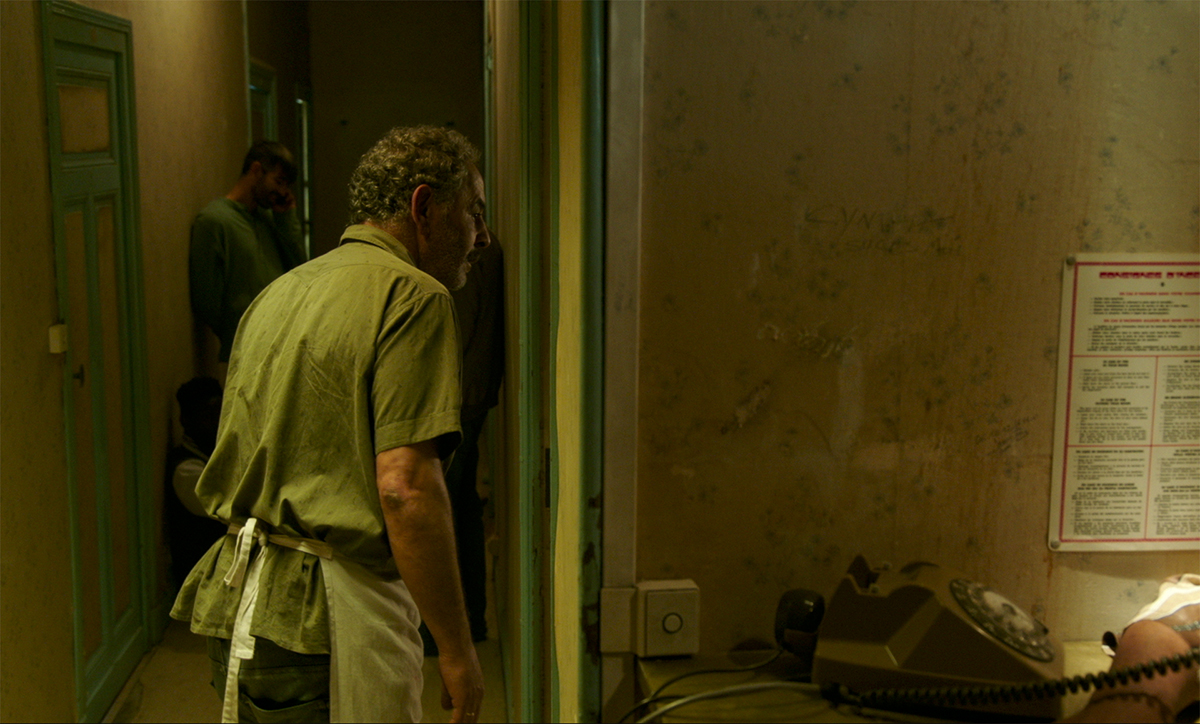 En ce qui concerne la lumière, ou bien les sources de lumière, la question était très importante dans un film en huis clos qui se passe en grande partie pendant la nuit. La présence, centrale dans le film, des ordinateurs nous a donné un élément déterminant pour trouver une direction esthétique : la lumière froide des écrans d’ordinateur allait forcément se mélanger avec celle plus chaude des sources artificielles ; pourquoi ne pas décliner ce mélange dans une palette chromatique plus riche ? En nous inspirant du travail du chef opérateur Robby Müller (notamment dans L’ami américain de Wim Wenders et dans Barfly de Barbet Schroeder), nous avons décidé de mélanger des sources de lumière très hétérogènes, obtenant une palette de couleurs à même de résonner avec les nuances émotionnelles du personnage d’Abdel, tout en créant des ambiances lumineuses crédibles.