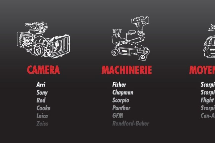 Location : Caméra, machinerie, lumière, boutique, véhicules, parking, régie et studios.