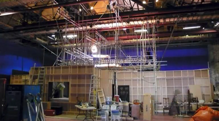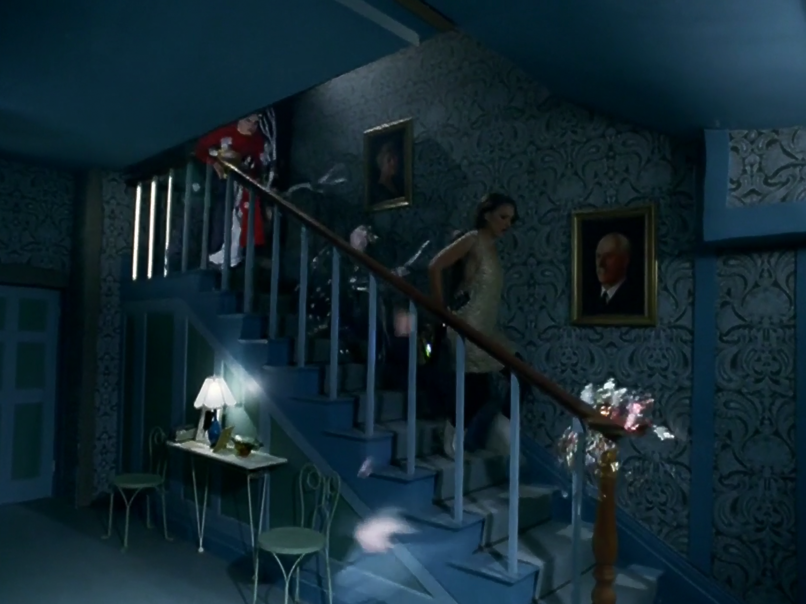 – La quasi totalité des effets a été filmée en prises de vues réelles. Il y avait un vidéoprojecteur très puissant qui diffusait directement la lumière sur les personnages dans la partie éclairée du décor. Cela a été un travail d’exposition assez complexe, à jongler entre la cellule et le spotmètre en intégrant l’image réfléchie pour parvenir à ce résultat. Sans compter la synchronisation entre les comédiens situés de part et d’autre du plateau, orchestrée par notre chorégraphe Bianca Li. Les étincelles, les projections, les animations de lumière, cela n’a pas été simple mais on s’est bien amusés avec Michel. Sur la séquence de fin de la fête en sous-sol, on s’est complètement lâchés, les électros animaient les spots avec des miroirs ou en faisant bouger les sources, toute la figuration était déchaînée, Michel et moi avons joué de la batterie avec Paul dans un bœuf improvisé, quel souvenir !