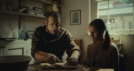 A. Un bon exemple est la scène de la cuisine. La majeure partie du film est tournée dans des espaces assez restreints, j’ai donc essayé de garder une lumière aussi douce que possible. Je voulais une scène à source unique, naturelle, mais avec de l’ampleur. Pour la cuisine, j’ai utilisé un Vortex 8 avec une grande soie 8×8 afin de faire rebondir la lumière. Cela ressemble à un book light, mais créé de façon très simple. Il y avait ensuite cette lumière dure qui entrait par la fenêtre derrière l’oncle. L’éclairage, le workflow d’étalonnage et certains choix de production nous ont permis d’obtenir ce rendu. Toutefois, le tournage au format 65mm entre aussi en compte. C’est une histoire intime qui parle d’une jeune fille, mais je souhaitais lui donner une certaine ampleur, car ce sont les expériences les plus importantes qu’elle ait vécues dans sa vie. Le 65mm apporte indéniablement ce sentiment d’importance.