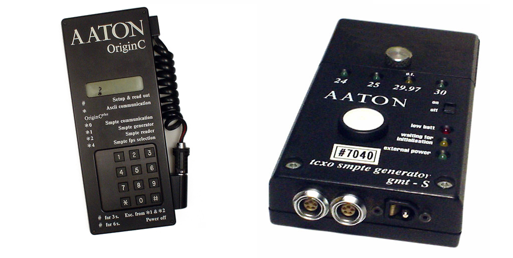 Il faut ici mentionner la société Aaton, société française fondée par l’ingénieur (et regretté) Jean-Pierre Beauviala, qui a beaucoup œuvré pour la synchronicité du son et de l’image, fabriquant des caméras exceptionnelles (quartz introduit par le même Beauviala, alors employé par la société Éclair, sur les caméras Éclair Coutant et ACL, dès la fin des années soixante), mais également des enregistreurs son tout aussi exceptionnels (les Cantar). Aaton avait évidemment conçu des boitiers de synchronisation image/son, et même un code spécifique pour identifier chaque photogramme exposé sur la pellicule : l’AatonCode.